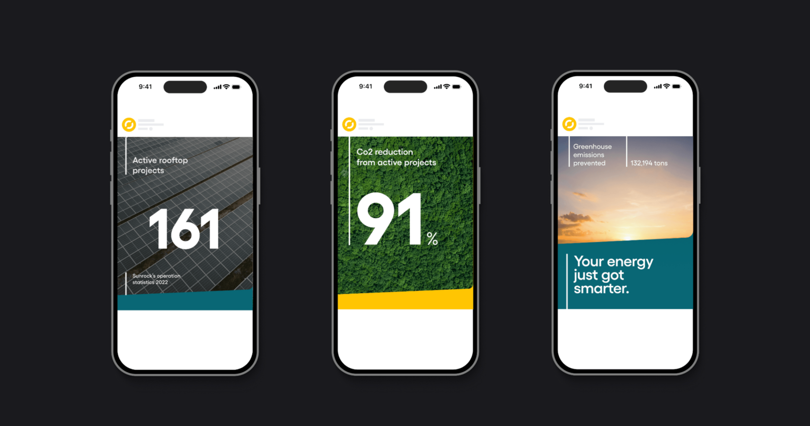 By adjusting the colour set to a more muted green, getting rid of the bright blue and focussing on the big projects Sunrock delivers, this ‘Maturity’ was consistently applied throughout all brand and marketing assets.